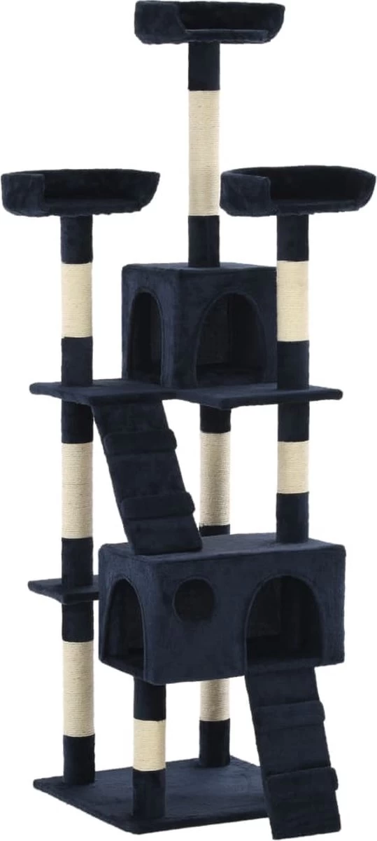 Je kattenvriendjes kunnen hun klauwen scherper maken met de krabpalen die omwikkeld zijn in sisaltouw, dit zorgt voor een gezonde uitlaatklep voor de krablust van je kat. Ze zullen het ook heerlijk vinden om achter elkaar aan te rennen terwijl ze van en op dit leuke speelcentrum springen. Wanneer ze genoeg gespeeld hebben kunnen je kleine vriendjes uitrusten op de bovenste platformen, waar ze een beter uitzicht hebben. Ze kunnen zich ook verschuilen in de knusse huisjes om een dutje te doen. Met al deze leuke functies wordt dit kattenspeelhuis de favoriete hangplek van je harige vriendjes! De kattenkrabpaal is eenvoudig te monteren.