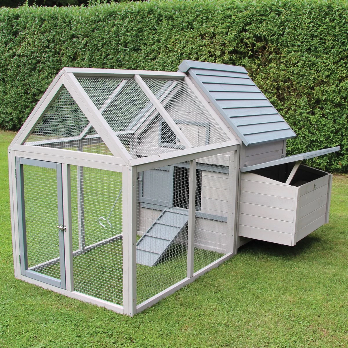 Het kippenhok is gemaakt van zachthout, niet giftig en geïmpregneerd tegen vocht. Het metaaldraad is verzinkt en biedt een goede bescherming tegen roofdieren zoals marters en vossen.