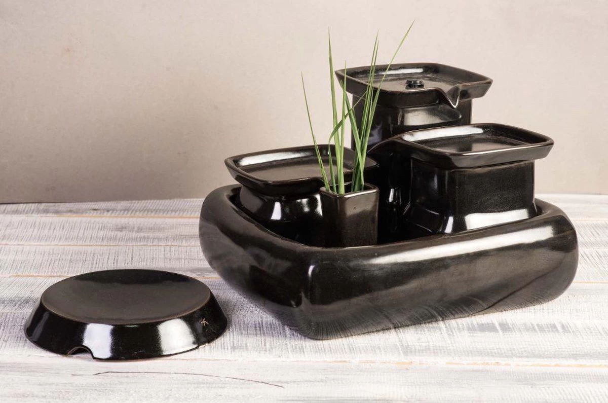 Bij deze fontein zit een bijpassende voerbak en kattengras kit.