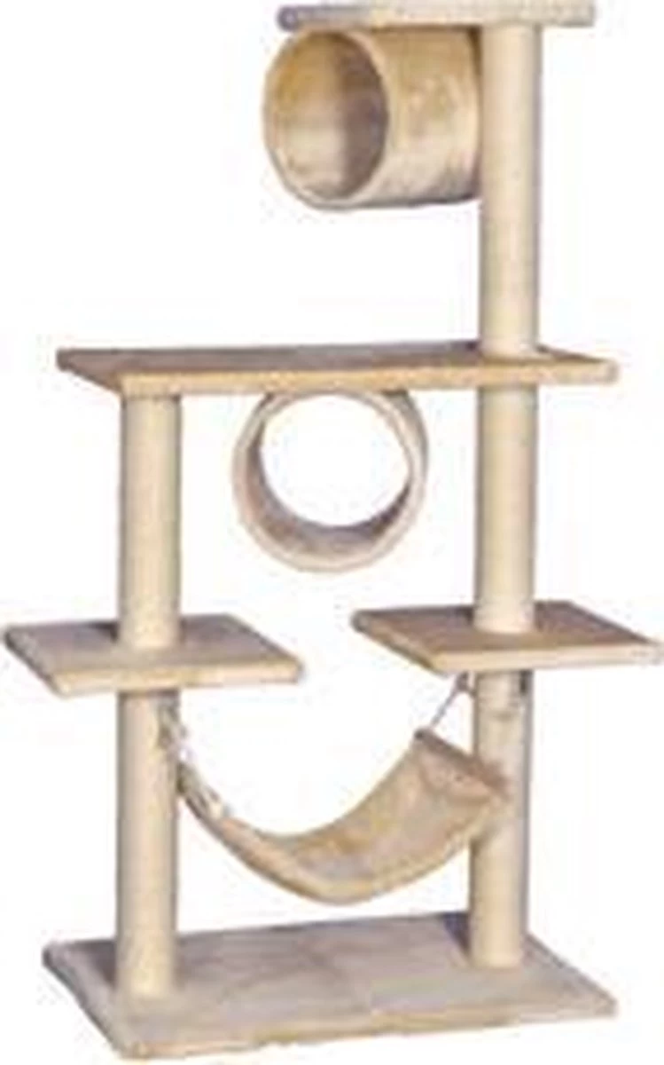 De Nobby Jade groot (beige) is een luxe krabmeubel. Het meubel heeft twee krabpaal van verschillende hoogtes. De krabpalen worden onderbroken door plankjes. Tussen de twee krabpalen hangt een kattenbedje. Verder bevat het Jady krabmeubel twee kleine kattentunneltjes waar je kat lekker in kan liggen.
