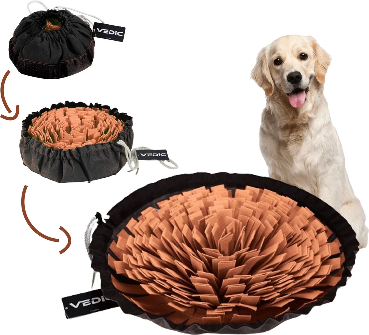 Schrokt jouw hond ook zijn eten op zonder te kauwen? Of ben je opzoek naar uitdaging voor je hond of kat? Of gewoon naar een leuk speeltje? Dan hoef je niet verder te zoeken, want deze XL snuffelmat van VEDIC is alles wat je nodig hebt!