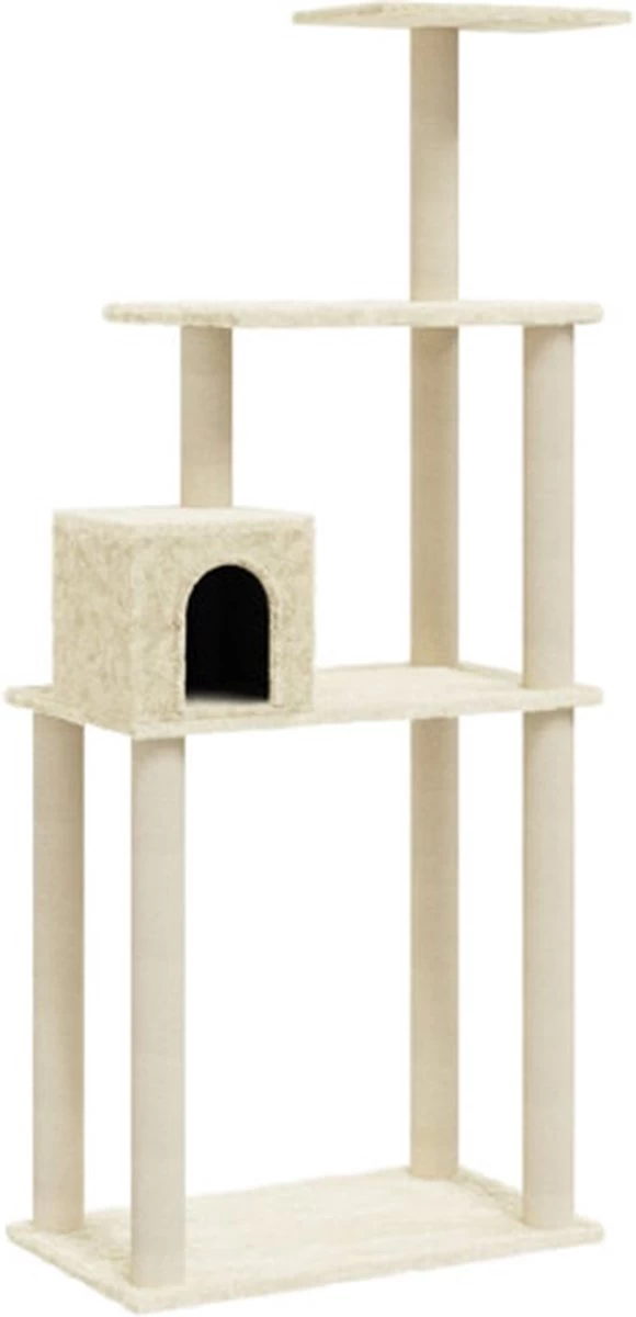 Je harige vriendjes kunnen hun klauwen scherper maken met de krabpalen die met sisal touw omwikkeld zijn. Dit zorgt voor een gezonde uitlaatklep voor de krablust van je kat. Ze vinden het ook heerlijk om achter elkaar aan te rennen terwijl ze van en op dit leuke speelmeubel springen. Wanneer ze genoeg gespeeld hebben, kunnen je kleine vriendjes uitrusten op de bovenste platformen, waar ze een beter uitzicht hebben. Ze kunnen zich ook verschuilen in het knusse huisje om een dutje te doen of lekker ontspannen op het comfortabele pluche zitvlak.